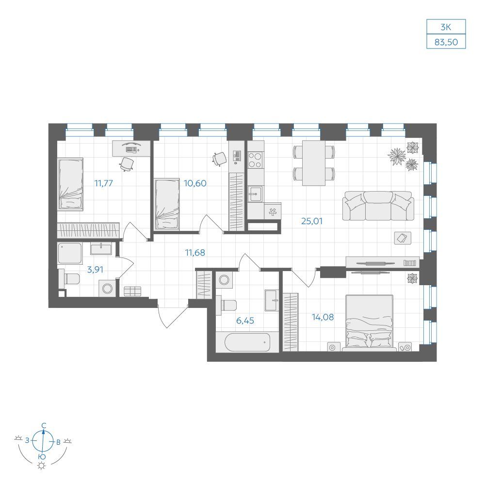 - № 14Высота 323Дом, Секция 1, Этаж 3
