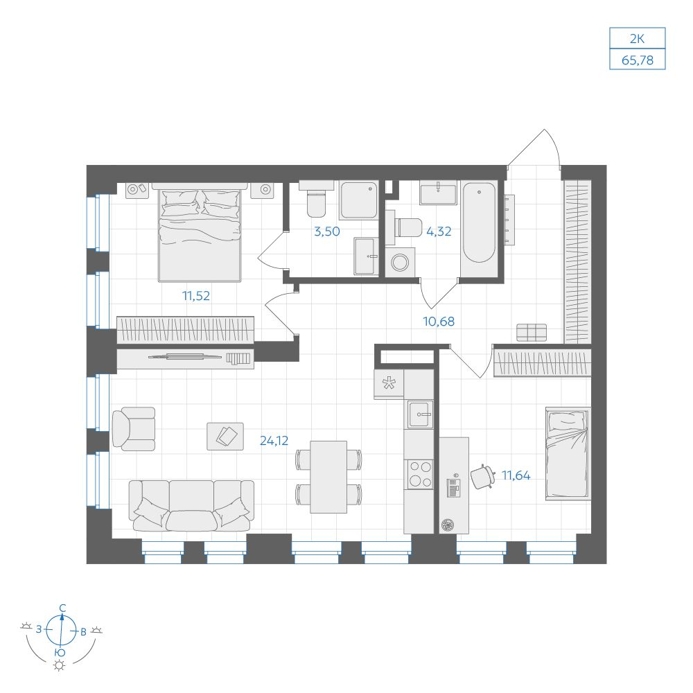 Забронировано - № 11Высота 323Дом, Секция 1, Этаж 3