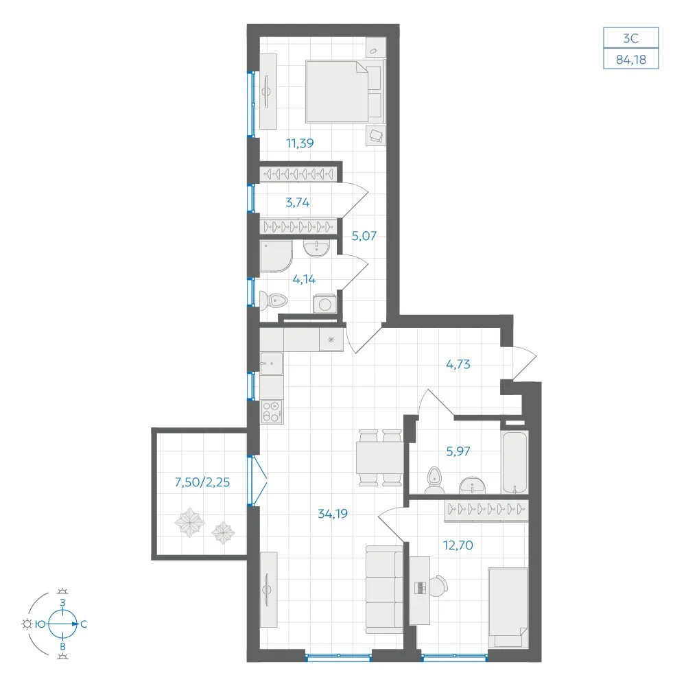 - № 1Клубный дом БольшойДом 12, Секция 1, Этаж 2